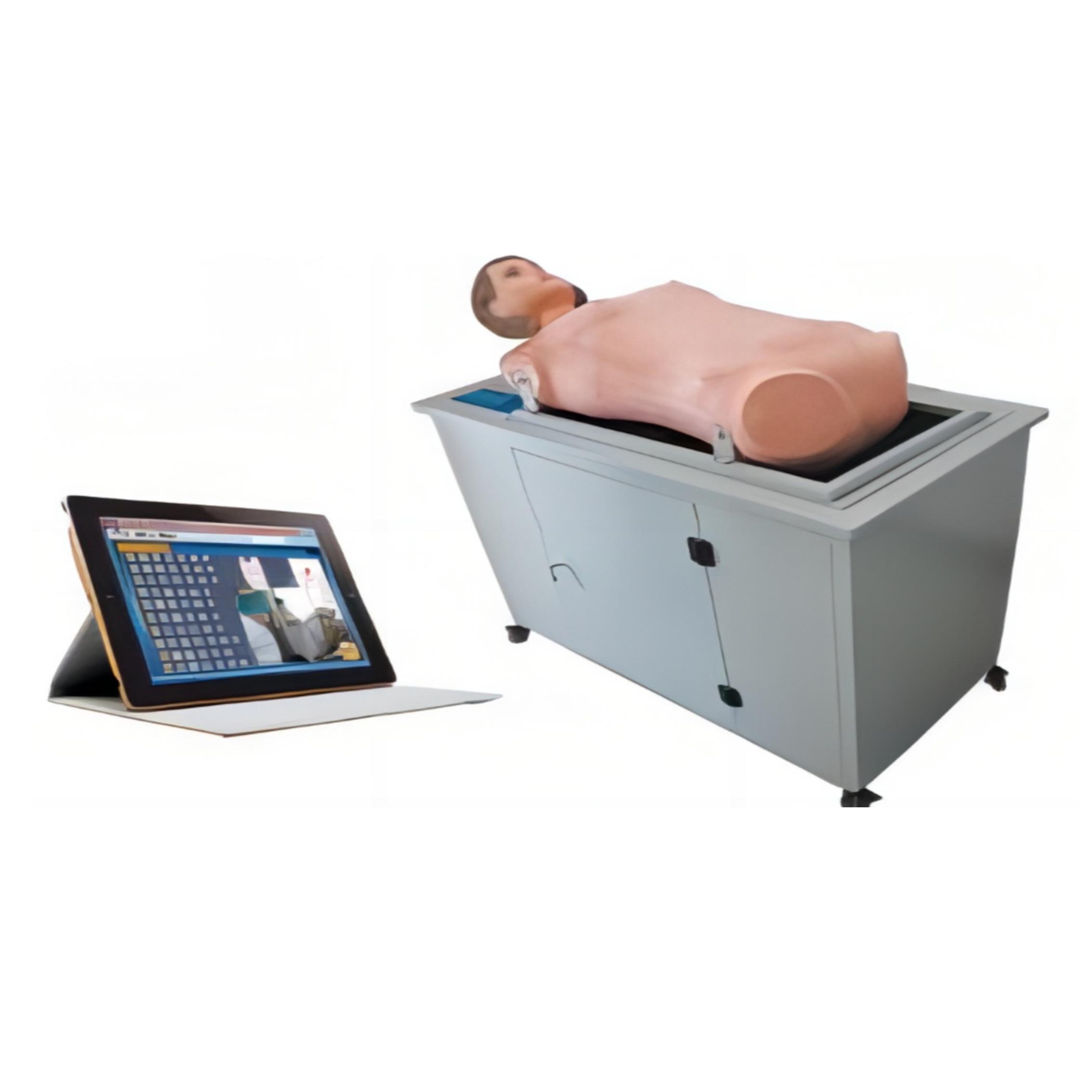 3、調(diào)整體位幅度大: 其特點是自動化程度更高,穿刺時模擬人體位的調(diào)整也完全自動化。當(dāng)進(jìn)行心包穿刺術(shù)或胸腔穿刺術(shù)時,通過平板電腦即可使模擬人由平臥位自動變?yōu)榘肱P位或坐位。當(dāng)進(jìn)行腰椎穿刺術(shù)時,可使平臥位自動變?yōu)閭?cè)臥位。實習(xí)完畢按動復(fù)位按鈕可使模擬人恢復(fù)平臥位。