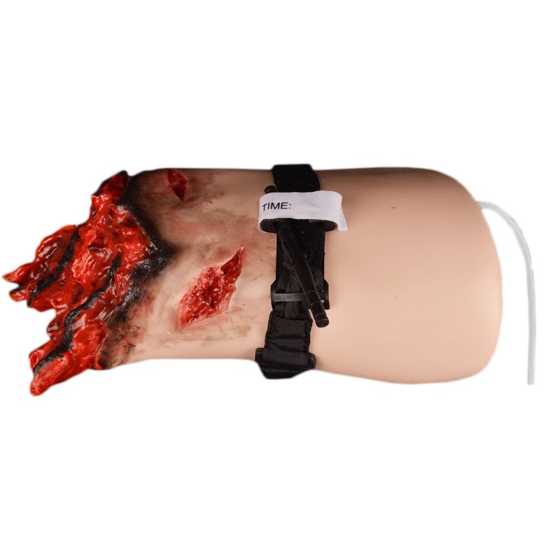 ■ 模型為成人下肢大腿離斷模型,具有股動(dòng)脈解剖標(biāo)志,可進(jìn)行股動(dòng)脈壓迫止血訓(xùn)練,按壓股動(dòng)脈走行區(qū),可產(chǎn)生模擬止血效果。■ 可以灌入模擬血液,并模擬一定的動(dòng)脈壓力。■ 可進(jìn)行斷肢出血后的止血、包扎操作訓(xùn)練。