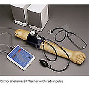The S410 Blood Pressure Training System includes a full-size adult left arm that may also attach to any Gaumard adult manikin. This is a versatile training tool developed to assist health professionals teach the processes and skills required to perform blood pressure auscultation procedures. Full size left arm that may also attach to any Gaumard adult manikin. Programmable, palpable radial pulse when cuff pressure is less than the selected systolic blood pressure Korotkoff sounds K1 through K4 (K5 is silence) audible between systolic and diastolic pressures Korotkoff sounds are automatically silenced if auscultation gap is selected Korotkoff sounds are automatically adjusted depending upon selected heart rate and the rate of cuff deflation. Conventional stethoscope to auscultate Korotkoff sounds in the antecubital area. Conventional sphygmomanometer cuff with tubing assembly. Programmable Blood Pressure Auscultation Tutor featuring: –Adjustable systolic and diastolic pressures –Adjustable auscultation gap –Adjustable pulse rate –Display tracks cuff pressure –International power supply 100 to 240 VAC Optional speakers with volume control allow students to hear what the individual student hears while using the stethoscope. Carrying bag Instruction manual