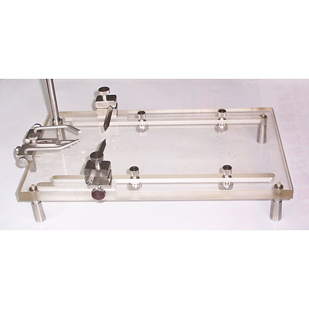 用厚型有機玻璃及不繡鋼制作,帶有腦手術(shù)定位裝置??勺鞲鞣N鼠類的常規(guī)手術(shù)及腦手術(shù)臺,用于血壓、心電、大腦皮層誘發(fā)電位等實驗。