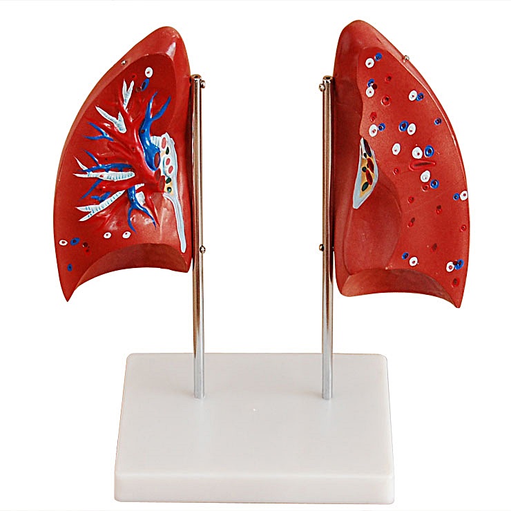 本模型自然大小,分成4件。兩瓣肺葉可取下,示其內(nèi)部結(jié)構(gòu)。有底座。