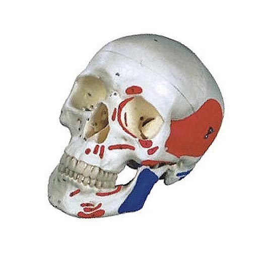 這款自然大頭顱骨肌肉著色模型在自然大頭顱骨模型的基礎(chǔ)上進(jìn)行肌肉著色,供更準(zhǔn)確的學(xué)習(xí)。分成三部分。
