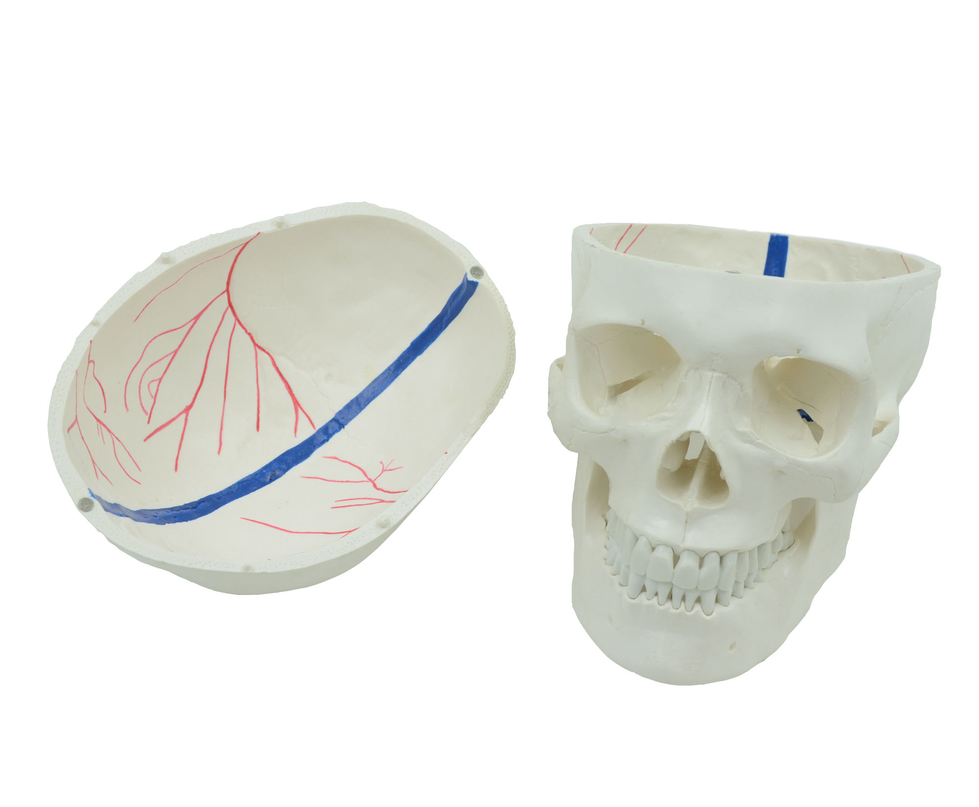 此款1比1大小的頭骨模型精確展示了正常人類頭骨的解剖細(xì)節(jié),并在顱內(nèi)展示了血管,并附有數(shù)字標(biāo)識(shí),方便教學(xué)。