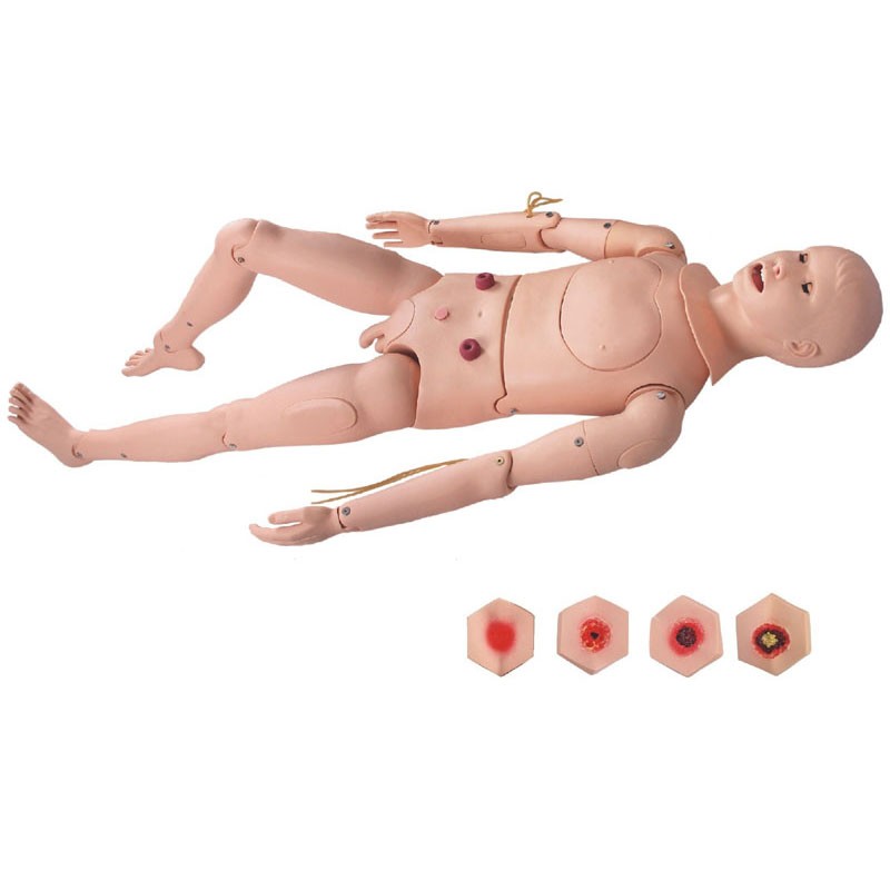 該產(chǎn)品集國(guó)外同類產(chǎn)品之長(zhǎng)處,由我公司開(kāi)發(fā)研制的高級(jí)型基礎(chǔ)護(hù)理操作功能模型,具有整體護(hù)理與拆裝分部件進(jìn)行技能訓(xùn)練教學(xué)。本模型是由進(jìn)口塑膠材料,經(jīng)不銹鋼模具澆注工藝制成。具有形象逼真、操作真實(shí)、拆裝方便、結(jié)構(gòu)合理、經(jīng)久耐用等。是目前國(guó)內(nèi)最先進(jìn)、功能最齊全、材料考究的全新產(chǎn)品。主要功能:■模擬人可取仰臥屈膝位,兩腿外展后可獨(dú)立支撐,左右上臂、小腿可靈活旋轉(zhuǎn)■?褥瘡護(hù)理:顯示壓瘡的臨床分期4個(gè)不