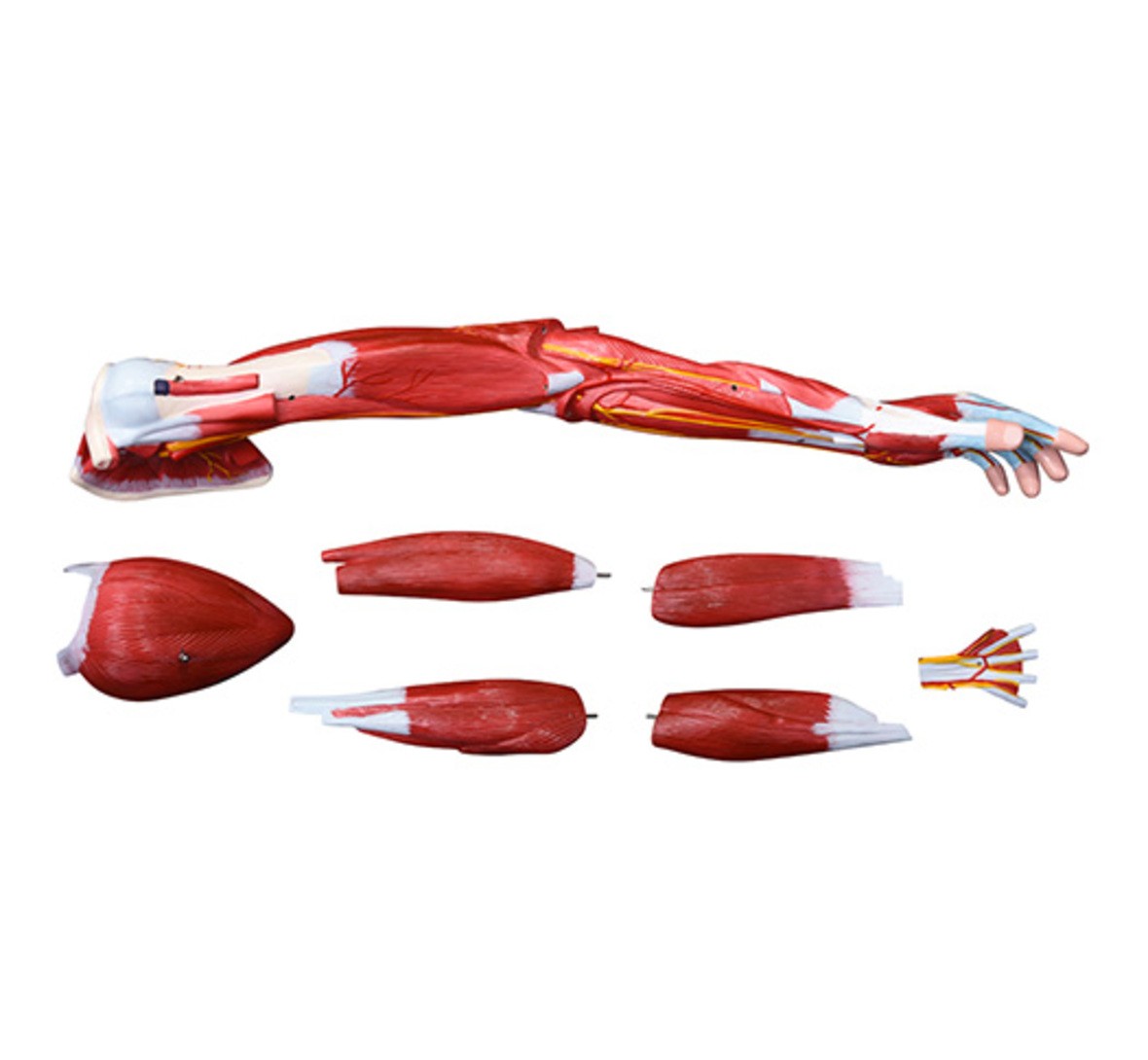 該模型可分為 7 個部分,以更詳細地顯示手臂的詳細解剖結構,包括淺層和深層肌肉、血管結構、神經(jīng)和韌帶。手和肩膀得到了很好的表現(xiàn)。
