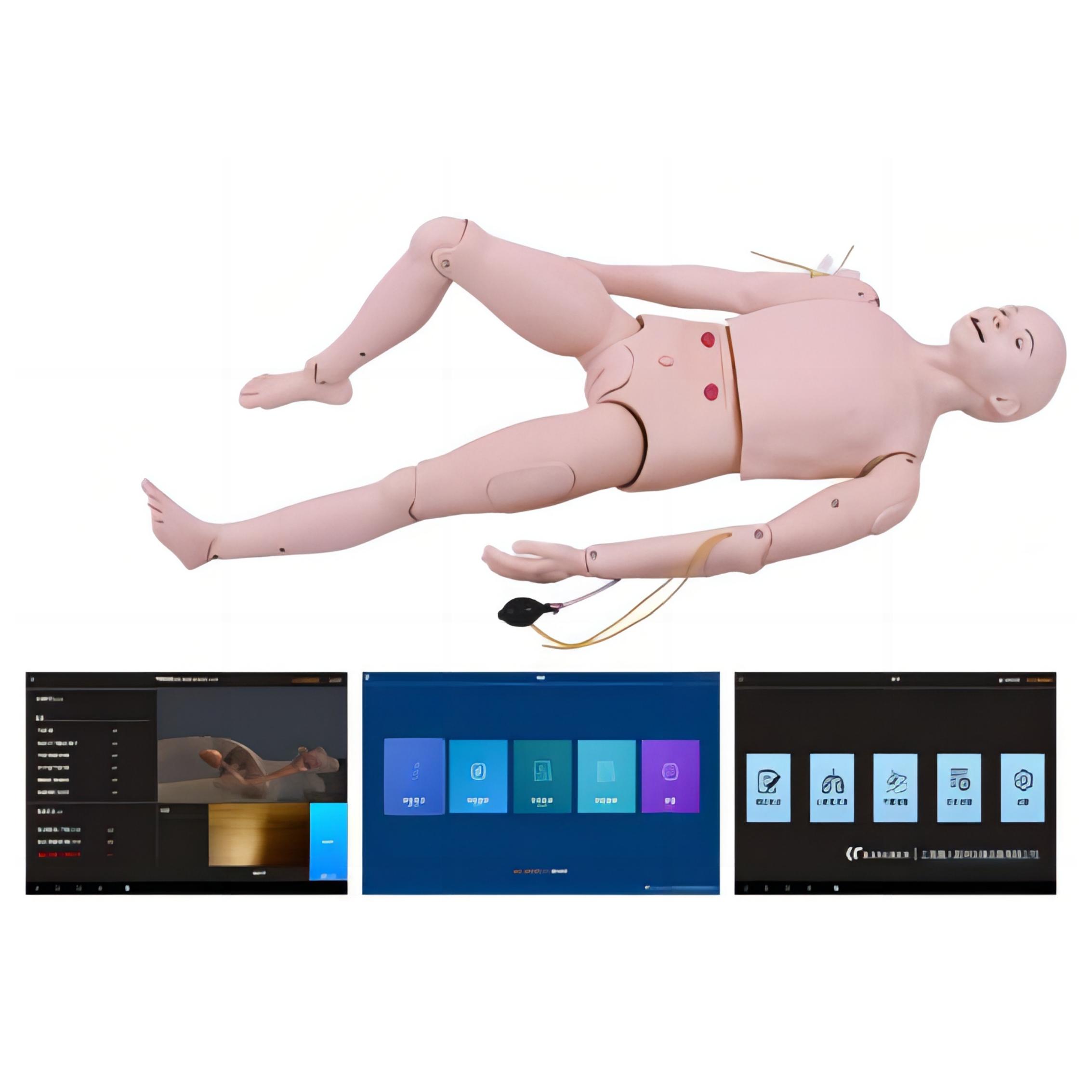 模擬人可取仰臥屈膝位,兩腿外展后可獨立支撐,左右上臂、小腿可靈活旋轉(zhuǎn)本模型是集護理與急救于一體的整體護理人,身高170cm,雙眼可眨動,關(guān)節(jié)靈活,可實現(xiàn)多種體位,滿足操作需要解剖標(biāo)志明顯,可觸及兩乳頭、肋骨、胸骨及劍突,胸部富有彈性,外皮可打開,能觀察到真實大小的肋骨、雙肺、心臟、肝臟、胃(透明),頸動脈搏動,等器官
