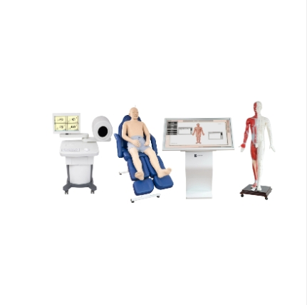 2、針灸模擬人全身設(shè)有 大于200個穴位點(diǎn)(六位點(diǎn)均以隱形標(biāo)識),與設(shè)備上的經(jīng)絡(luò)腧穴軟件配套使用,若使用刺六正確,系統(tǒng)同步播報該穴位名稱以及顯現(xiàn)相關(guān)圖文資料,并與站立式的發(fā)光模型交互,在該模型上亮起相應(yīng)穴位點(diǎn)。發(fā)光模型上共有426個穴位,14條經(jīng)絡(luò)線,可與系統(tǒng)內(nèi)軟件進(jìn)行對應(yīng)使用。