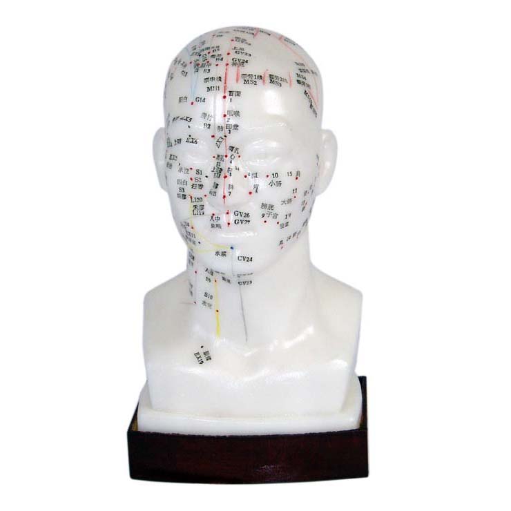 這款教育模型用軟PVC制成,標(biāo)明了頭部和頸部的所有重要的針灸經(jīng)絡(luò)線和穴位,也標(biāo)明了中國(guó)頭皮針插入孔,以及在主要針灸經(jīng)絡(luò)線上沒(méi)有標(biāo)明的經(jīng)外穴位如魚(yú)腰、印堂、太陽(yáng)和面部微系統(tǒng)的針灸穴位。附針灸穴位名稱(chēng)和位置圖(中英文)。