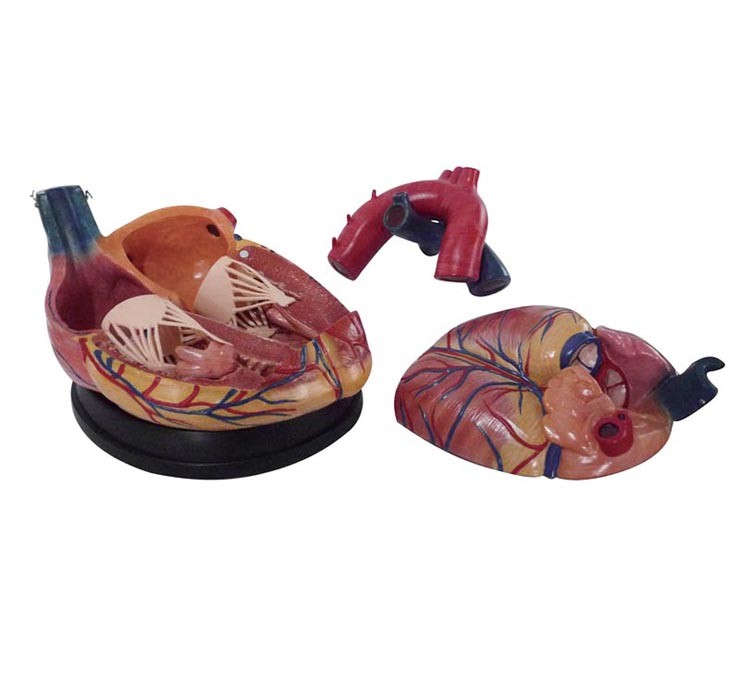 博友BOU-XC307C新型心臟解剖放大模型展示了包括主動(dòng)脈弓、冠狀第心房、以及心室、閥門和靜脈的解剖部件,分成3件,4倍放大。