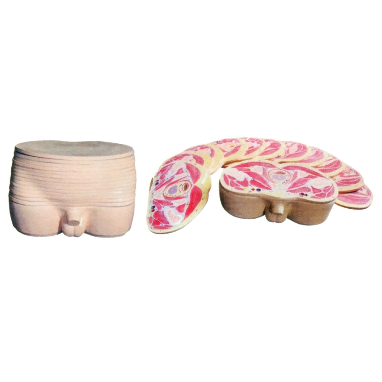 博友BM1313男性盆部橫斷斷層解剖模型共13片,每片約1.2cm。