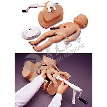 This system frees the instructor from “birthing duties” as the fetus descends through the birth canal. Features: removable end-plate for insertion of automatic birthing system; removable cervices automatically dilate as labor progresses; advance and rotation of fetus through birth canal; crowning of fetal head; manipulation of the vulva to pass the forehead, nose, and ears; syringe mouth and nose, rotation of the shoulders to enable correct delivery technique of neonate; birthing fetus; and two dilating cervices. May be used with the Advanced Childbirth Simulator (SB22438U). Comes with instruction manual and nylon carry bag.