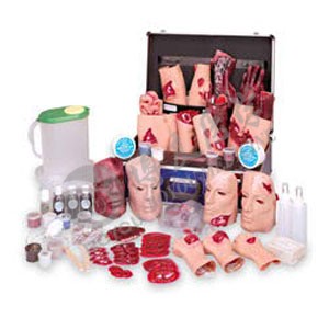 該95件套重創(chuàng)模型元件可進(jìn)行創(chuàng)傷處理練習(xí)。這些用乙烯樹脂制成的傷口,可以粘貼或用繃帶綁在模型人或真實(shí)傷者的身體上。每個(gè)流血的傷口包括一個(gè)用于模擬血液的儲存袋和動力泵。用來練習(xí)快速識別傷口和傷口的伴隨癥狀、訓(xùn)練現(xiàn)場急救、傷口分類。重15千克。