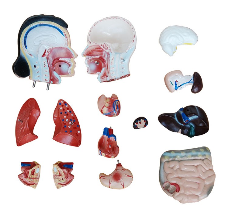 博友BOU-XC202B女性軀干模型42CM(15件)這是一款女性軀干模型,含15件內(nèi)臟:軀干,頭(2件),腦,肺(2件),心(2件),胃,肝,胰和脾,腎,腸和女性生殖器官(2件)。