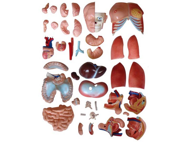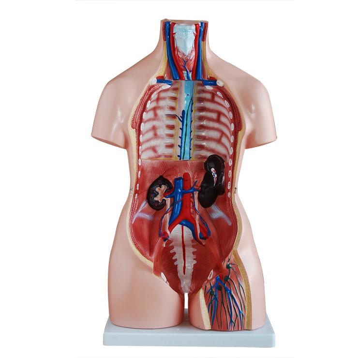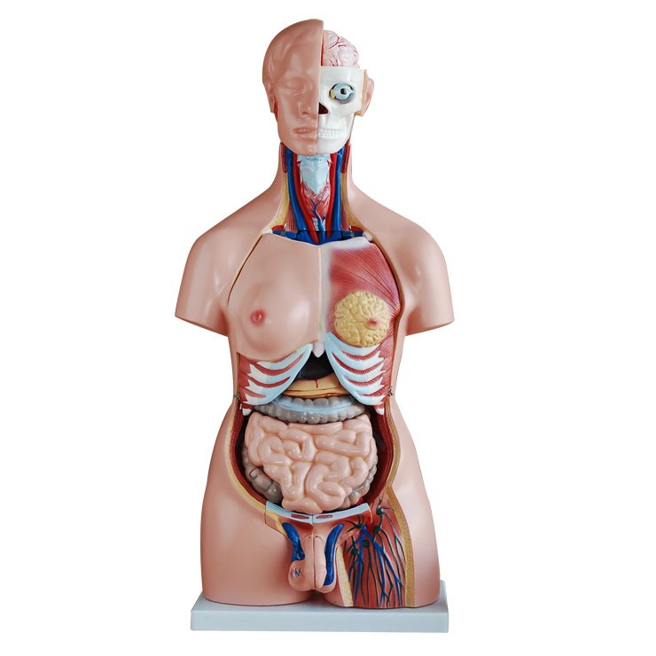 博友BOU-XC208兩性互換軀干模型85cm(40件)這款兩性軀干模型分成40件:軀干,女性胸腔蓋,頭,眼球,腦(8件),脊椎神經(jīng)(4件),肺(4件),心(2件),氣管,食管和主動(dòng)脈,橫膈膜,肝,腎,胃(2件),腸(4件),男性生殖器官(4件)和女性生殖器官帶胎兒(3件)。